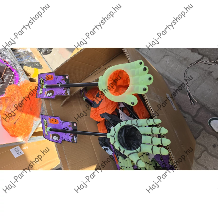 A gyerekek imádni fogják ezt a különleges Halloween cukorgyűjtő zsákot, amelyet szörnykéz vagy csontvázas kéz fogantyú díszít.