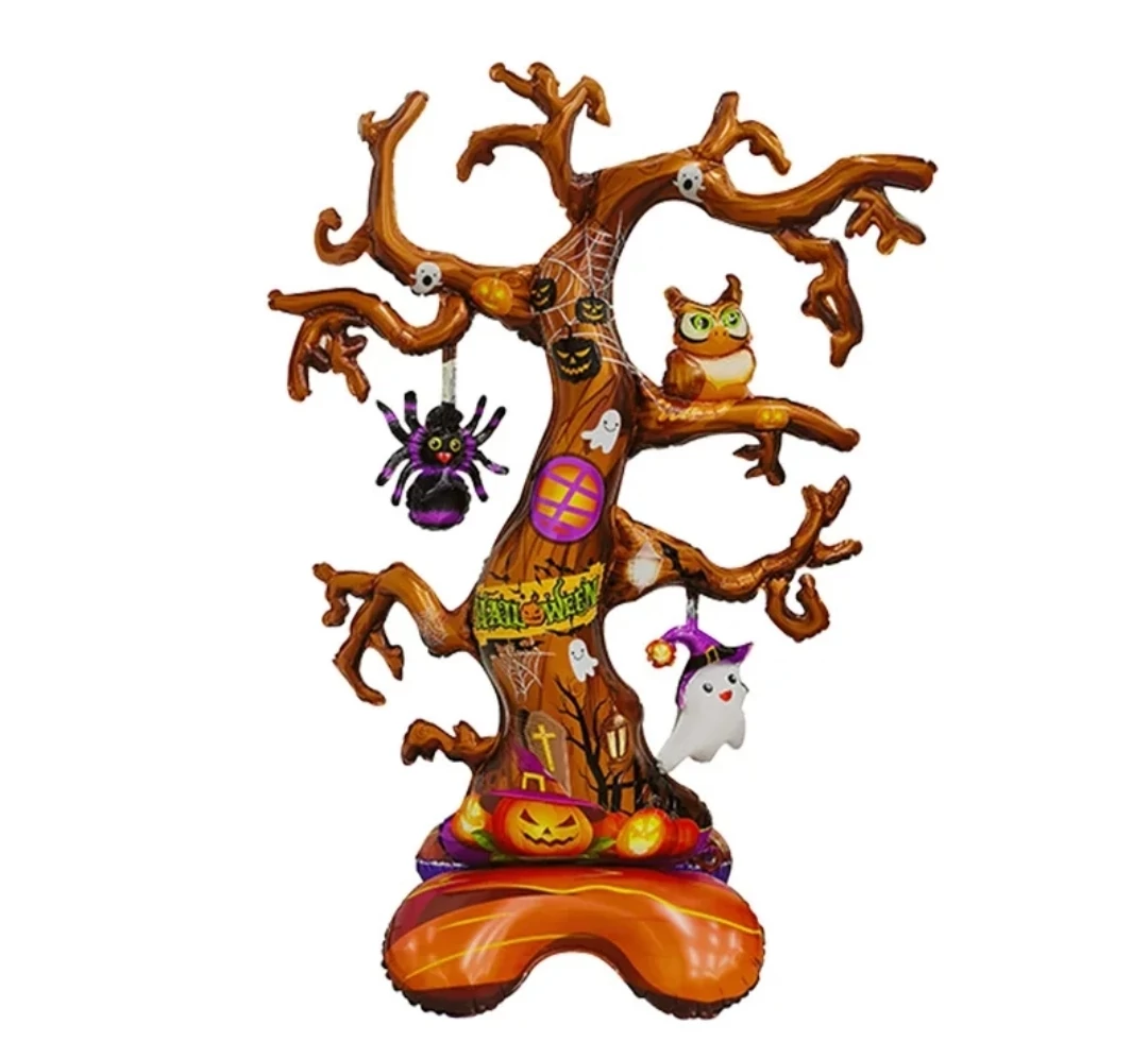 A fa ágain szellemek, denevérek, pókok és egy bagoly ülnek, alján pedig töklámpások kísérik. A lufi önállóan megáll, nem szükséges hozzá hélium – egyszerűen levegővel felfújható.