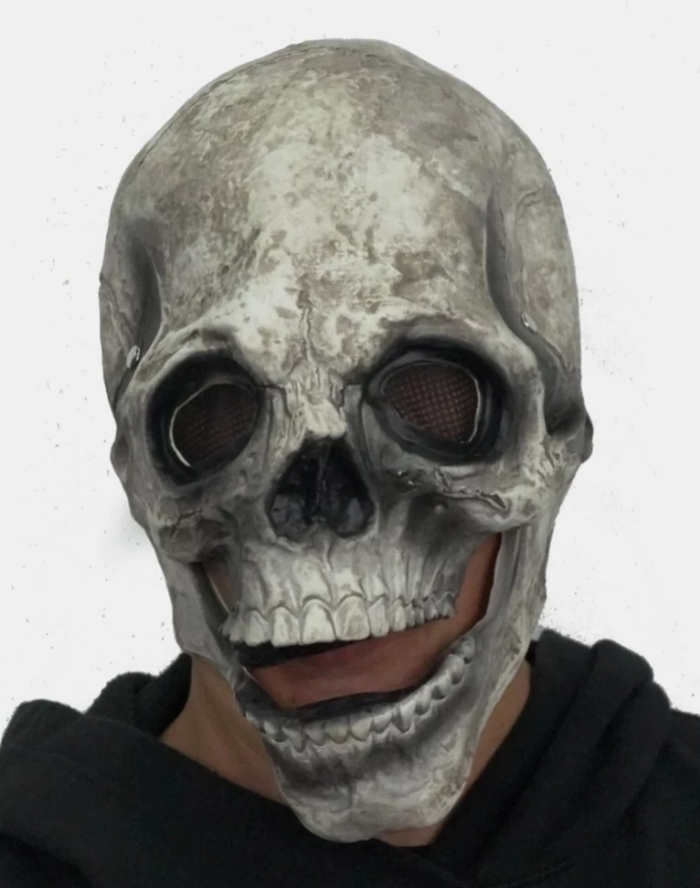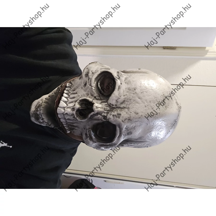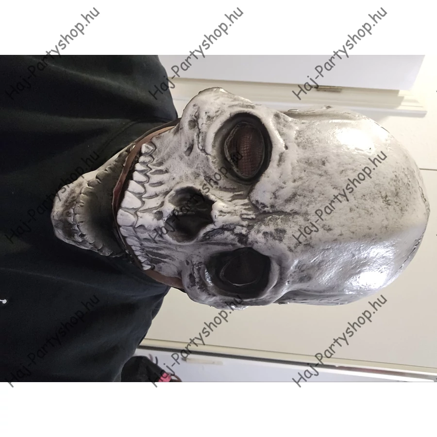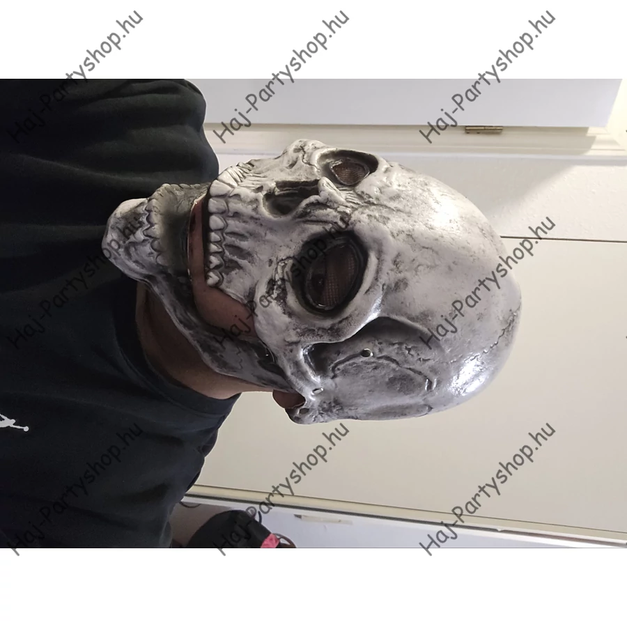 . A maszk jól illeszkedik felnőtt fejformára, természetes, szürkés-csontszínű festése még valósághűbbé teszi a megjelenést.